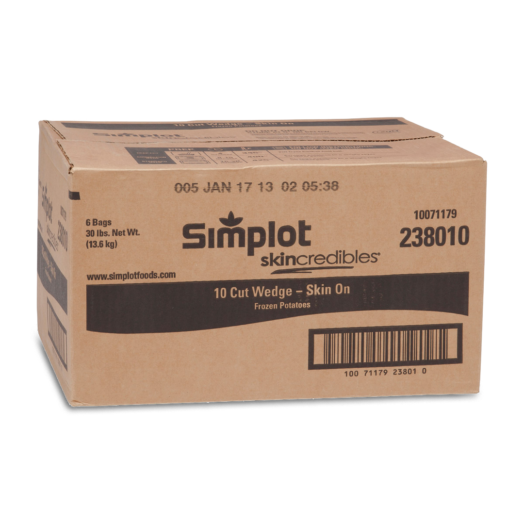The ultimate in pure potato taste and homemade, skin-on appearance, Skincredibles® offers a variety of options and cuts, from fries and wedges to chips and boats, all with satisfying potato flavor. This 10-cut, skin-on wedge stays warm and crisp in the cafeteria or the deli case.